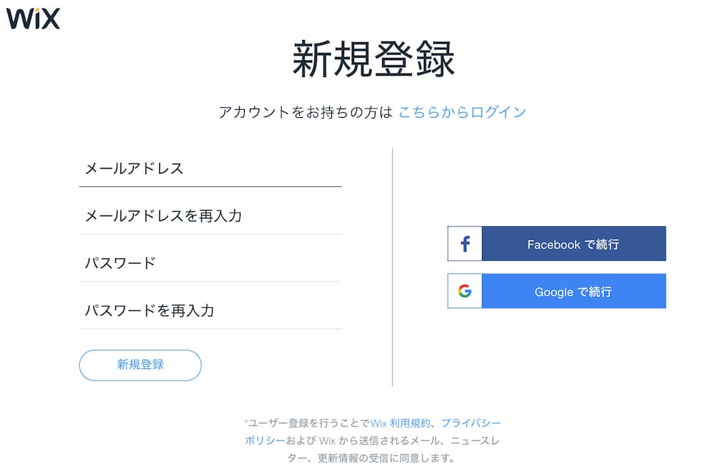 - Wixにアカウントを作成する