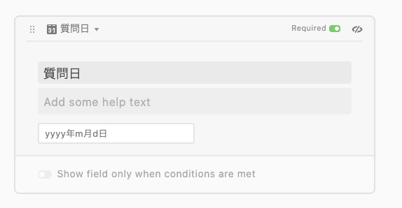 Airtableでは、項目のデフォルト値の設定ができないので、質問日を作成日にすることで日付が自動で入るようにしています。