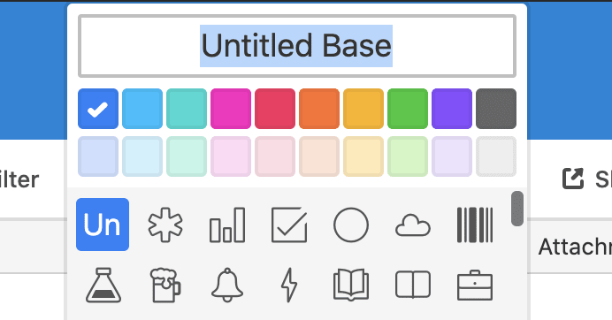 workspaceから、Add a baseからbase => Start from scratchから作成します。