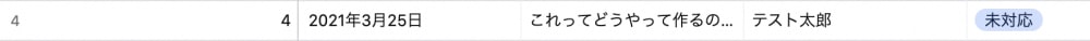 フォームから投稿すると、スプレッドシートに質問内容が追加されます。