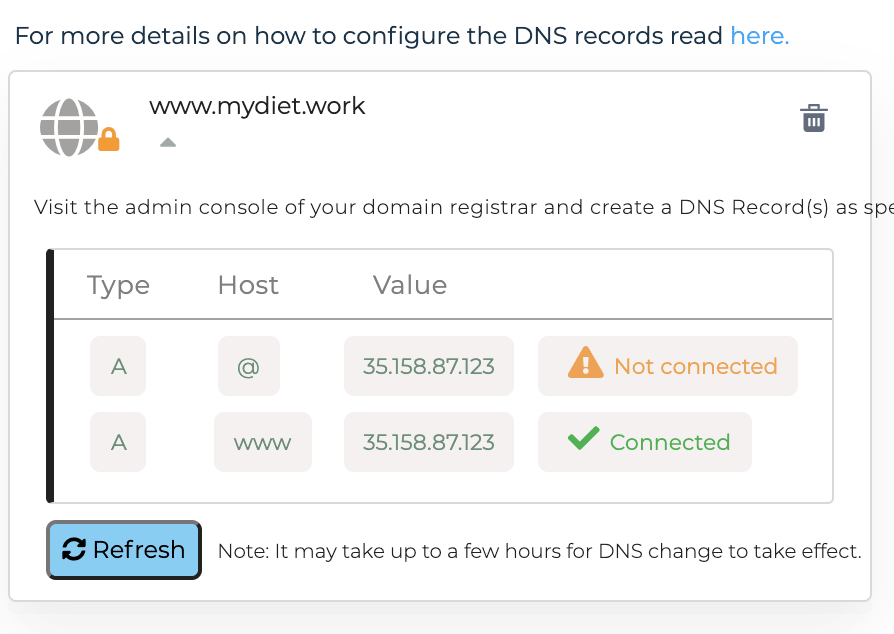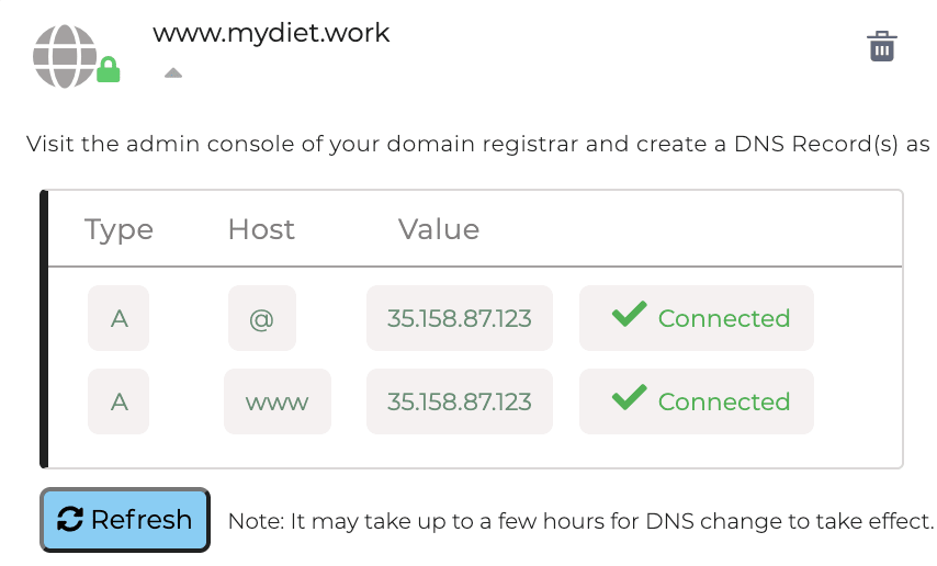 設定が完了したら、再度、Softrの管理画面にいき、変更が反映されるまでrefreshで確認します。