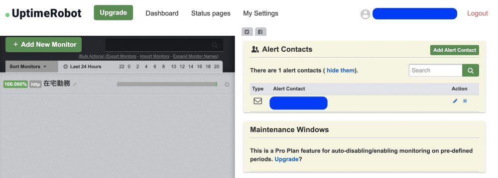 5サイトまでは、無料です。ただし、監視の間隔は、最小でも5分までです。個人ブログなら、5分落ちていても問題ないですね。