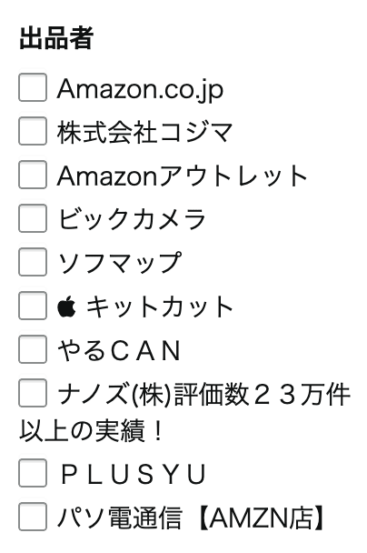商品一覧の絞り込み検索を選択すると、出品者という項目が表示されることがあります。