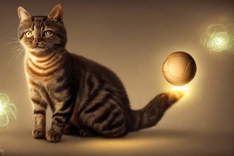 prompt = "cute cat paly with ball, professionally retouched, soft lighting, wide angle, 8 k high definition, intricate, elegant, art by brian miller, peter mohrbacher, Lens flare effect"