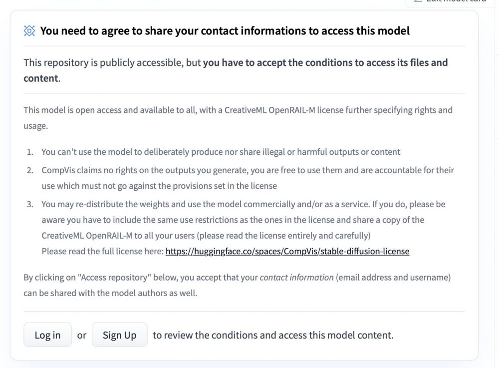 以下のページにアクセスして、同意します。(Hugging Faceのアカウントが作成されていることが前提です)